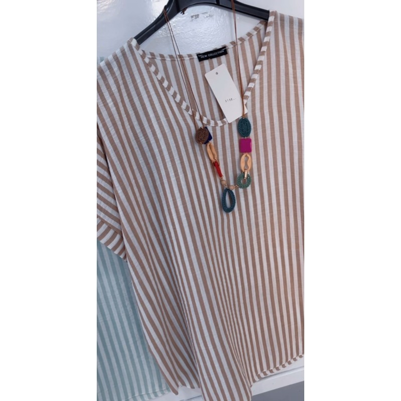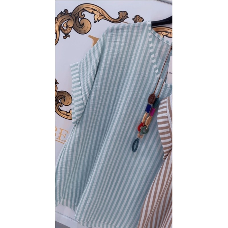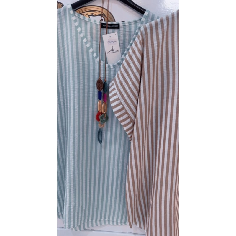 Camisa fresquita collar incluido con rayas, hasta talla 44